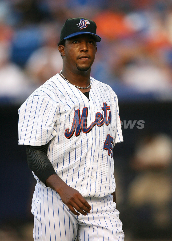 【8月9日 AFP】MLB、ニューヨーク・メッツ(New York Mets)に所属するペドロ・マルチネス(Pedro Martinez)は8日、メッツ傘下の1Aセントルイス・メッツ(Saint Lucie Mets)でレイクランド・タイガース(Lakeland Tigers)戦に先発し、右肩の手術から復帰後初登板を果たした。ペドロ・マルチネスは2本塁打を含む6安打5失点を喫し3回でマウンドを降り、試合はセントルイス・メッツが6-9で敗れた。(c)AFP/Getty Images