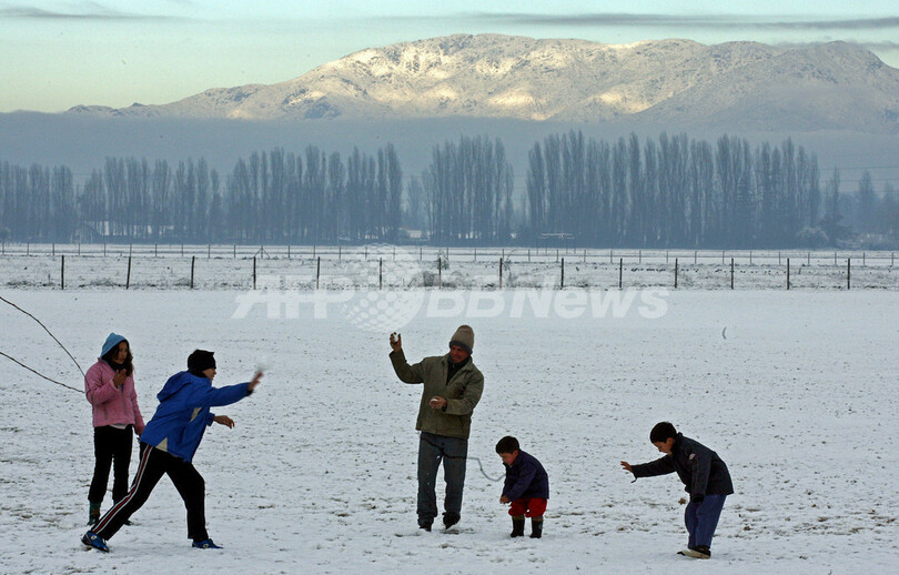 ニュース 社会 南米チリに記録的な寒波が到来、10人が死亡 2007年8月10日 14:38 発信地:サンティアゴ/チリ [ 中南米 チリ ] このニュースをシェア ‹ › ❮ 6/16 ❯ 2008年8月9日、雪に覆われたチリの首都サンティアゴ(Santiago)郊外で、雪合戦をする人々。(c)AFP/Martin BERNETTI 画像作成中 ! 【8月10日 AFP】この冬、記録的な寒波に見舞われた南米チリ中・南部で9日、気温が氷点下まで下がり、各地で降雪が観測された。過去40年で一番の寒さとなったことで、これまでに10人が死亡、農産物には1億5000万ドル(約180億円)に及ぶ被害が出た。農業分野における被害総額は、2億5000万ドル(約300億円)に達する可能性もある。(c)AFP 社会 一覧へ> メディア・報道関係・法人の方向け 写真・動画 購入のお問合せ>