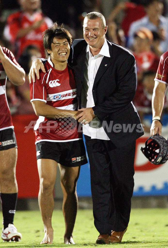 【8月11日 AFP】ラグビー日本代表は10日、現地9月7日から開幕する07ラグビーW杯フランス大会の壮行試合でアジア・バーバリアンズ(Asian Barbarians)と対戦。試合は日本代表が69-10でアジア・バーバリアンズに勝利した。試合後に日本代表のジョン・カーワン(John Kirwan)ヘッドコーチは、「W杯に向けてまだまだやらなければならない事はたくさんある。しかし今日の試合は良い自信になったと思う」と語った。(c)AFP