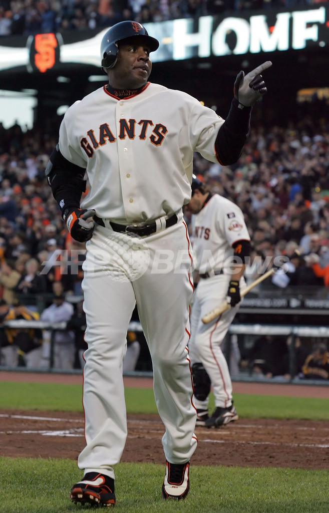 スポーツ 野球 ボンズ 通算758号を放つ 2007年8月11日 17:34 発信地:サンフランシスコ/米国 [ 北米 米国 ] このニュースをシェア ‹ › ❮ 3/5 ❯ 通算758号を放ち、ファンの声援に応えるボンズ。(c)AFP/Getty Images Lisa Blumenfeld 画像作成中 ! 【8月11日 AFP】07MLB、サンフランシスコ・ジャイアンツ(San Francisco Giants)vsピッツバーグ・パイレーツ(Pittsburgh Pirates)。4番・左翼で先発出場したジャイアンツのバリー・ボンズ(Barry Bonds)は、3回に今季第24号2ラン本塁打を放ち、MLB歴代最多本塁打記録を758本に更新した。試合はジャイアンツが7-8でパイレーツに敗れた。(c)AFP/Getty Images 野球 一覧へ> メディア・報道関係・法人の方向け 写真・動画 購入のお問合せ>