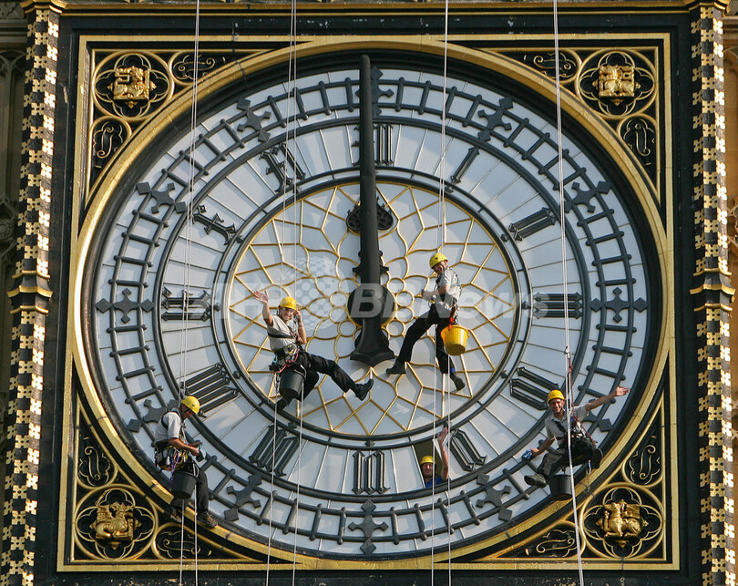 午前8時(GMT午前7時)が告げられた後、あの「ボーン」という鐘の音は止められた。英国国会議議事堂(Westminster’s Houses of Parliament)に付属している全長96メートルの「ビッグベン」の南面を、数名のスタッフが針を正午の位置に合わせる為、垂直に降下した。