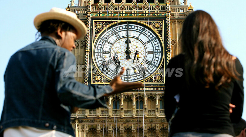 午前8時(GMT午前7時)が告げられた後、あの「ボーン」という鐘の音は止められた。英国国会議議事堂(Westminster’s Houses of Parliament)に付属している全長96メートルの「ビッグベン」の南面を、数名のスタッフが針を正午の位置に合わせる為、垂直に降下した。