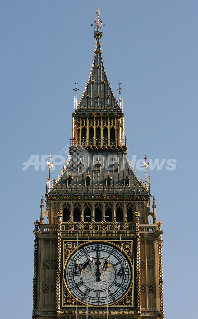 午前8時(GMT午前7時)が告げられた後、あの「ボーン」という鐘の音は止められた。英国国会議議事堂(Westminster’s Houses of Parliament)に付属している全長96メートルの「ビッグベン」の南面を、数名のスタッフが針を正午の位置に合わせる為、垂直に降下した。