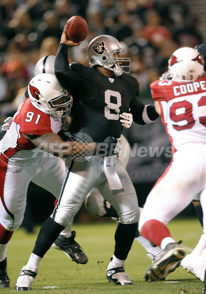 スポーツ アメリカンフットボール レイダース プレシーズン初戦を勝利で飾る 2007年8月12日 19:26 発信地:オークランド/米国 [ 北米 米国 ] このニュースをシェア ‹ › ❮ 1/9 ❯ カーディナルスのDEロドニー・ベイリー(%%Rodney Bailey%%、左)にタックルを受けるレイダースのQBダンテ・カルペッパー(%%Daunte Culpepper%%)。(c)AFP/Getty Images Greg Trott 画像作成中 ! 【8月12日 AFP】07NFL・プレシーズン・第1週、オークランド・レイダーズ(Oakland Raiders)vsアリゾナ・カーディナルス(Arizona Cardinals)。試合は27-23でレイダースが勝利した。(c)AFP/Getty Images アメリカンフットボール 一覧へ> メディア・報道関係・法人の方向け 写真・動画 購入のお問合せ>