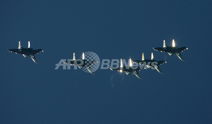 ニュース ライフ ロシア空軍創設95周年の航空ショー開催 2007年8月13日 16:49 発信地:モニノ/ロシア [ ロシア・CIS ロシア ] このニュースをシェア ‹ › ❮ 4/6 ❯ 2007年8月11日、モニノ(Monino)で開催されたロシア空軍の航空ショーでアクロバット飛行をおこなうパイロットチーム「ロシアンナイツ(Russian knights)」。(c)AFP/ MAXIM MARMU 画像作成中 ! 【8月13日 AFP】ロシア空軍の創設95周年を記念して、首都モスクワ(Moscow)から約40キロのモニノ(Monino)で11日、航空ショーが開かれた。(c)AFP ライフ 一覧へ> メディア・報道関係・法人の方向け 写真・動画 購入のお問合せ>