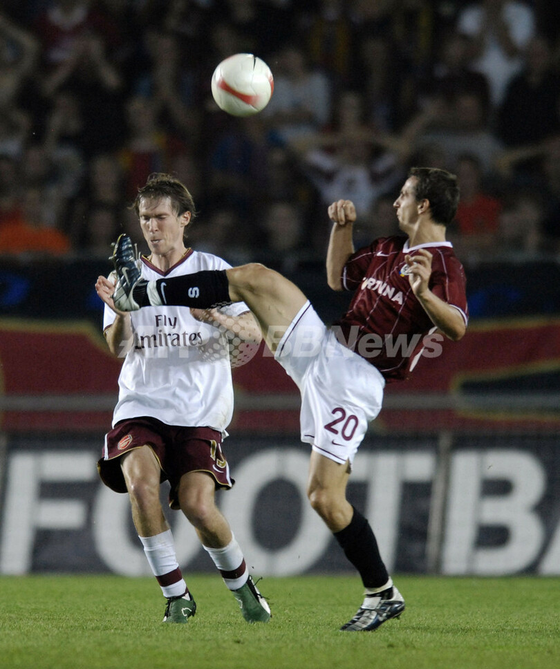 スポーツ サッカー アーセナル スパルタ・プラハとの第1戦を制す 2007年8月16日 10:50 発信地:プラハ/チェコ [ ヨーロッパ チェコ ] このニュースをシェア ‹ › ❮ 8/8 ❯ アーセナルのアレクサンデル・フレブ(%%Alexander Hleb%%、左)からマークを受けるスパルタ・プラハのズデニェク・ポスピェフ(%%Zdenek Pospech%%)。(c)AFP 画像作成中 ! 【8月16日 AFP】サッカー欧州チャンピオンズリーグ2007-08(UEFA Champions League 2007-08)・予備選3回戦、スパルタ・プラハ(Sparta Prague、チェコ)vsアーセナル(Arsenal、イングランド)、第1戦。試合はアーセナルが2-0でスパルタ・プラハを降し、アウェーでの初戦で先勝した。(c)AFP サッカー 一覧へ> メディア・報道関係・法人の方向け 写真・動画 購入のお問合せ>