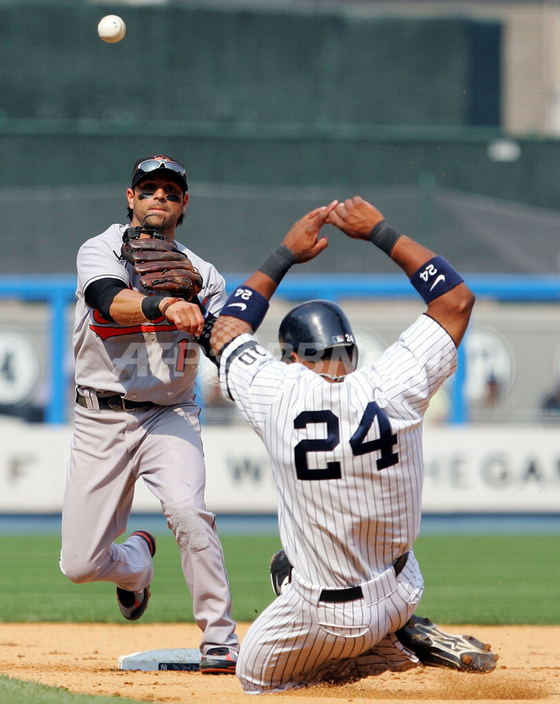 スポーツ 野球 オリオールズ ヤンキースを降し2連勝 2007年8月16日 12:56 発信地:ニューヨーク/米国 [ 北米 米国 ] このニュースをシェア ‹ › ❮ 9/14 ❯ ダブルプレーを狙い一塁へ送球するオリオールズの二塁手ブライアン・ロバーツ(%%Brian Roberts%%、左)。(c)AFP/Getty Images Jim McIsaac 画像作成中 ! 【8月16日 AFP】07MLB、ニューヨーク・ヤンキース(New York Yankees)vsボルチモア・オリオールズ(Baltimore Orioles)。試合は延長10回の末にオリオールズが6-3でヤンキースを降し、2連勝を飾った。(c)AFP/Getty Images 野球 一覧へ> メディア・報道関係・法人の方向け 写真・動画 購入のお問合せ>