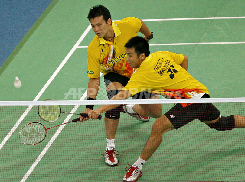 【8月17日 AFP】07バドミントン世界選手権(07 Badminton World Championships)・男子ダブルス準々決勝。マレーシアのチョン・タン・フック(Choong Tan Fook)/リー・ワン・ワー(Lee Wan Wah)組は、中国のフ・ハイファン(Fu Haifeng)/カイ・ユン(Cai Yun)組と対戦。フック/ワー組はセットカウント2-1(15-21、21-18、21-19)でフ・ハイファン/カイ・ユン組を破り、準決勝進出を決めた。(c)AFP