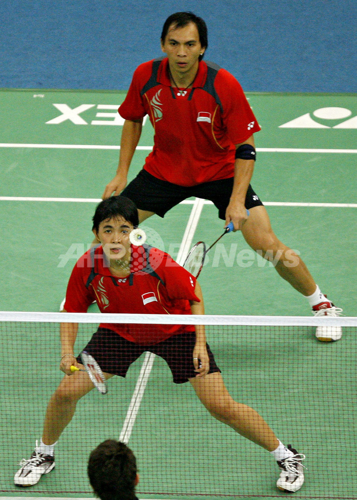 【8月17日 AFP】07バドミントン世界選手権(07 Badminton World Championships)・混合ダブルス準々決勝。大会第6シードのフランディー・リンベレ(Flandy Limpele、インドネシア)/ヴィタ・マリサ(Vita Marissa、インドネシア)組は、大会第4シードのネイサン・ロバートソン(Nathan Robertson、英国)/ゲイル・エムス(Gail Emms、英国)組と対戦。リンベレ/マリサ組は2-0(21-13、21-16)のストレートでロバートソン/エムス組を降し、準決勝進出を決めた。(c)AFP