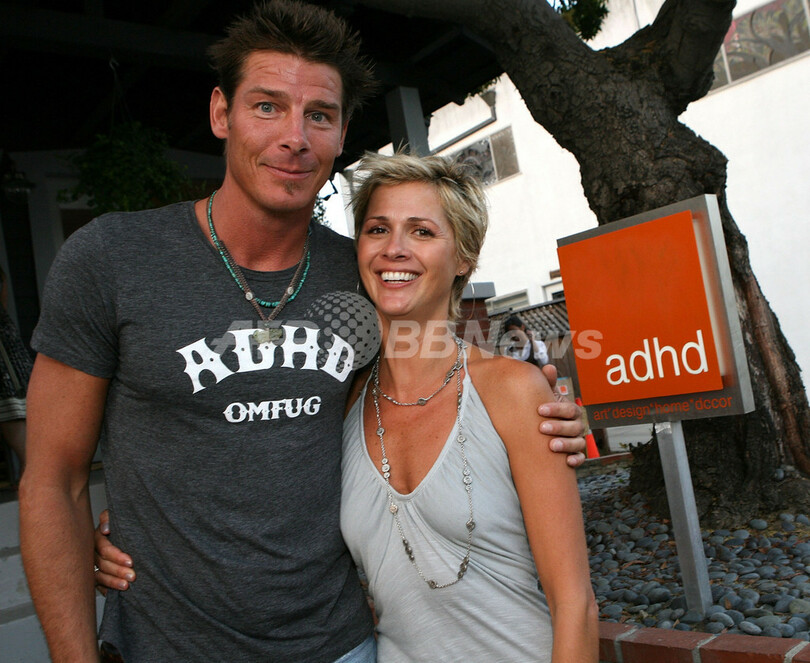 2007年8月15日、米カリフォルニアのベニスビーチ(Venice Beach)にオープンしたインテリアショップ「ADHD(Art*Design*Home*Design)」に姿をみせたデザイナーのタイ・ペニントン(Ty Pennington、左)とドレア・ブロック(Drea Block)。(c)AFP/Getty Images Michael Buckner
