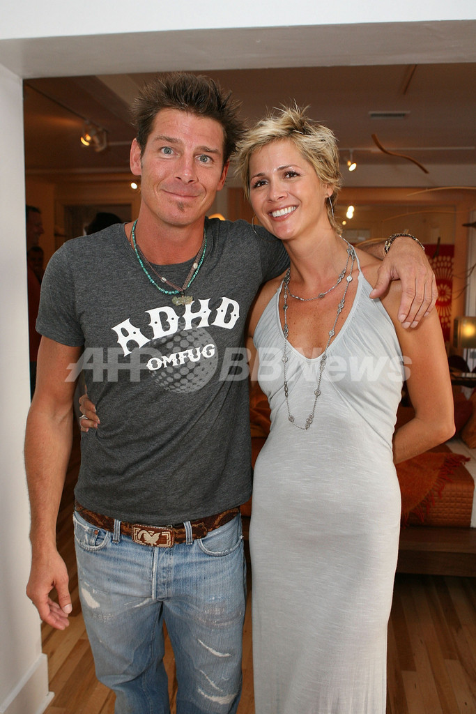 2007年8月15日、米カリフォルニアのベニスビーチ(Venice Beach)にオープンしたインテリアショップ「ADHD(Art*Design*Home*Design)」に姿をみせたデザイナーのタイ・ペニントン(Ty Pennington、左)とドレア・ブロック(Drea Block)。(c)AFP/Getty Images Michael Buckner