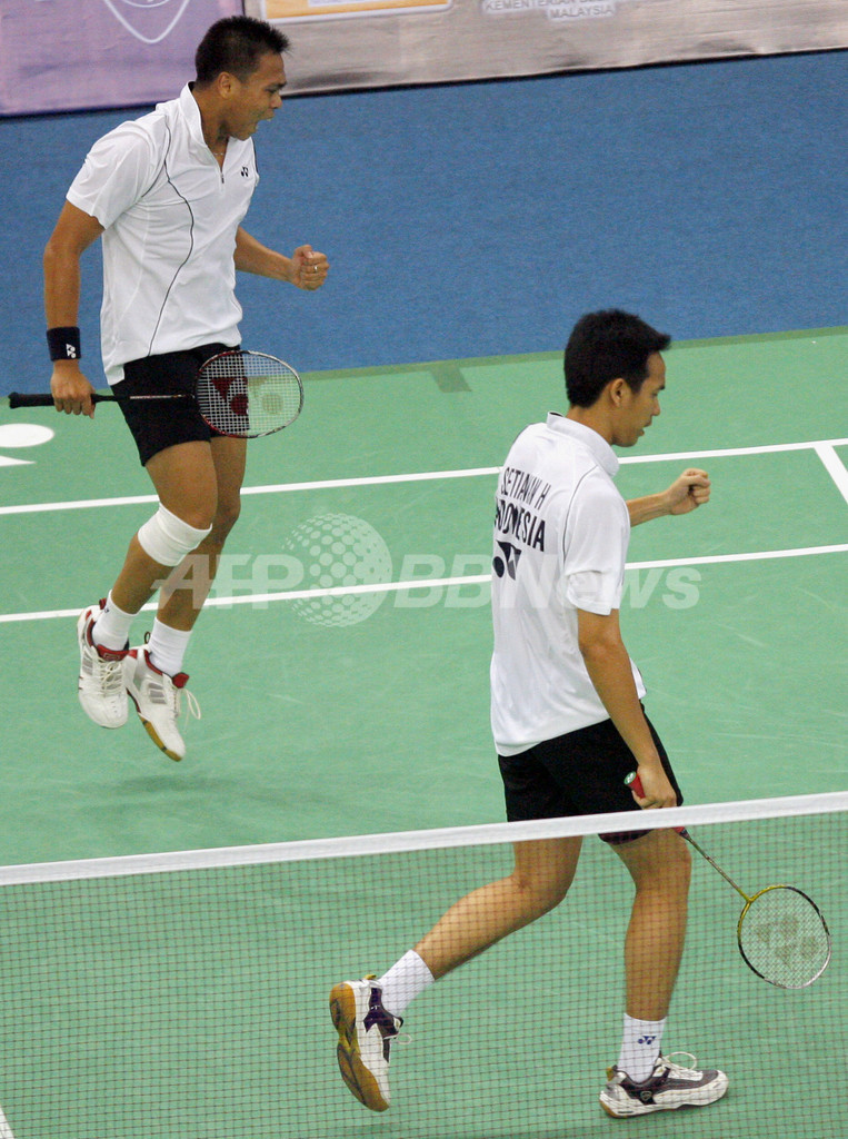 【8月18日 AFP】07バドミントン世界選手権(07 Badminton World Championships)・男子ダブルス準決勝。大会第3シードのマーキス・キド(Markis Kido、インドネシア)/ヘンドラ・セティアワン(Hendra Setiawan、インドネシア)組は、大会6第シードのチョン・タン・フック(Choong Tan Fook、マレーシア)/リー・ワン・ワー(Lee Wan Wah、マレーシア)組と対戦。キド/セティアワン組が2-0(22-20、28-26)のストレートでフック/ワー組を降し、決勝進出を決めた。(c)AFP