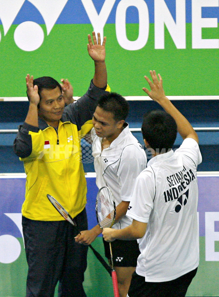 【8月18日 AFP】07バドミントン世界選手権(07 Badminton World Championships)・男子ダブルス準決勝。大会第3シードのマーキス・キド(Markis Kido、インドネシア)/ヘンドラ・セティアワン(Hendra Setiawan、インドネシア)組は、大会6第シードのチョン・タン・フック(Choong Tan Fook、マレーシア)/リー・ワン・ワー(Lee Wan Wah、マレーシア)組と対戦。キド/セティアワン組が2-0(22-20、28-26)のストレートでフック/ワー組を降し、決勝進出を決めた。(c)AFP