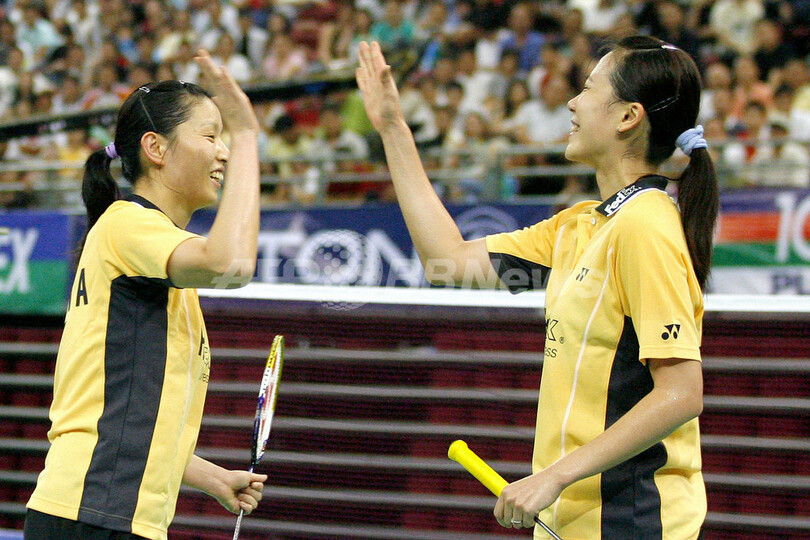 【8月19日 AFP】07バドミントン世界選手権(07 Badminton World Championships)・女子ダブルス決勝。大会第3シードのヤン・ウェイ(Yang Wei、中国)/チャン・ジウェン(Zhang Jiewen、中国)組は、大会第2シードのガオ・リン(Gao Ling、中国)/スイ・ホワン(Huang Sui)組と対戦。ヤン/チャン組はセットカウント2-0(21-16、21-19)のストレートでガオ/スイ組を降し、金メダルを獲得した。(c)AFP