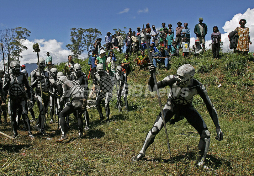 ニュース ライフ パプアニューギニアの祭典「シンシン」、民族文化を披露 2007年8月22日 15:17 発信地:マウントハーゲン/パプアニューギニア [ アジア・オセアニア パプアニューギニア ] このニュースをシェア ‹ › ❮ 18/23 ❯ 2007年8月19日、第46回「シンシン(Singsing)」に参加したOmo Masalaiの人々。(c)AFP/Torsten Blackwood 画像作成中 ! 【8月22日 AFP】マウントハーゲン(Mount Hagen)で18日に開幕した第46回「シンシン(Singsing、民族舞踏の意)」で19日、全国の民族がそれぞれの伝統芸能を披露した。毎年行われるこの催しは、パプアニューギニア各民族独自の伝統をたたえるとともに、対立抗争を避ける狙いで開催されている。(c)AFP/Torsten Blackwood ライフ 一覧へ> メディア・報道関係・法人の方向け 写真・動画 購入のお問合せ>