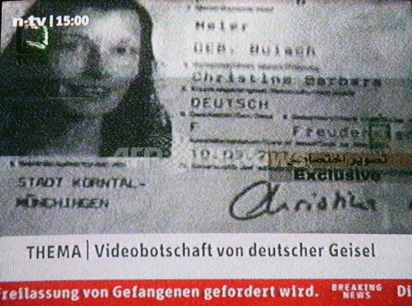 犯人グループが19日に公開したビデオの中で、女性は「Christina Meier」と名乗っていた。女性は18日、カブール市内のレストランで銃を突きつけられ、白昼拉致された。このときの銃撃戦でタクシー運転手1人が死亡している。