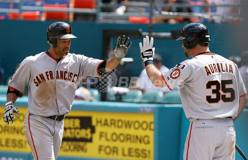 スポーツ 野球 ジャイアンツ マーリンズに競り勝ち5連勝 2007年8月21日 16:07 発信地:マイアミ/米国 [ 北米 米国 ] このニュースをシェア ‹ › ❮ 1/9 ❯ 6回表に6-5となるホームを踏みチームメイトのリッチ・オーリリア(%%Rich Aurilia%%、右)から祝福を受けるジャイアンツのデイブ・ロバーツ(%%Dave Roberts%%)。(c)AFP/Getty Images Doug Benc 画像作成中 ! 【8月21日 AFP】07MLB、フロリダ・マーリンズ(Florida Marlins)vsサンフランシスコ・ジャイアンツ(San Francisco Giants)。試合はジャイアンツが8-7でマーリンズを降し、5連勝を飾った。(c)AFP/Getty Images 野球 一覧へ> メディア・報道関係・法人の方向け 写真・動画 購入のお問合せ>