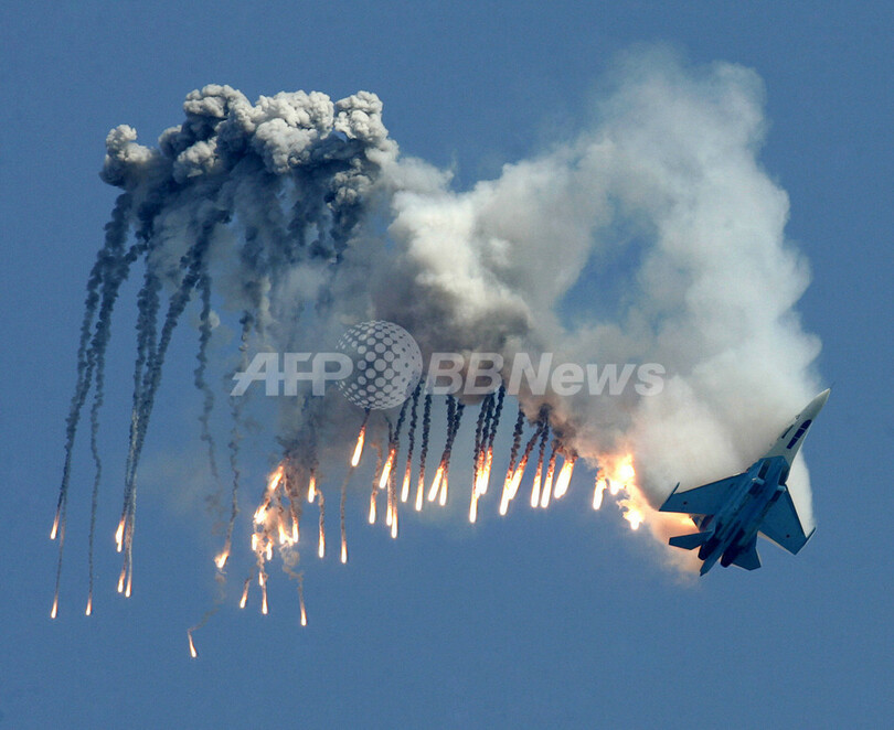 モスクワの南東、ジュコフスキー(Zhukovsky)訓練センターで行われたこの航空見本市では、プーチン大統領はロシア空軍総司令官や閣僚、ウクライナのビクトル・ユーシェンコ(Viktor Yanukovych)大統領などの外国使節を率いて、スホーイ(Sukhoi)やミグ(MiG)、ツポレフ(Tupolev)などの航空機製造会社の航空機を観覧した。