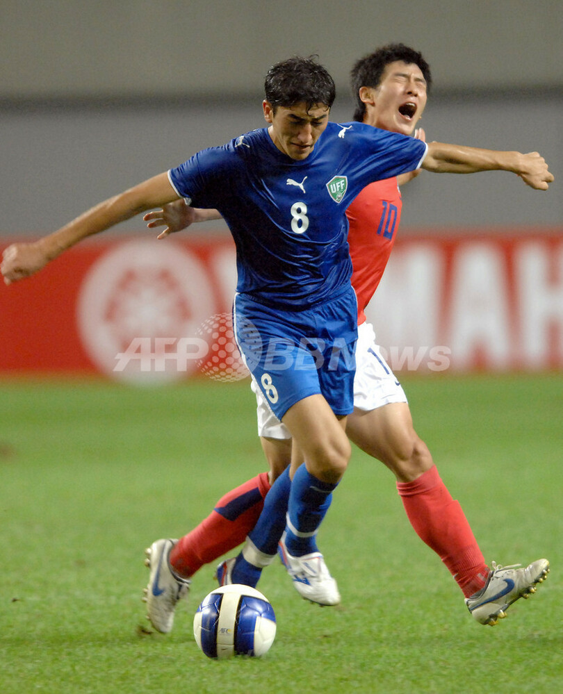 スポーツ サッカー 韓国 ウズベキスタンを破り五輪最終予選白星スタート 2007年8月23日 6:27 発信地:ソウル/韓国 [ 韓国・北朝鮮 韓国 ] このニュースをシェア ‹ › ❮ 3/5 ❯ 韓国のオ・ジャンウン(%%Oh Jang-Eun%%)を抑えボールをキープするウズベキスタンのオディル・アハメドフ(%%Odyl Ahmedov%%)。(c)AFP/JUNG YEON-JE 画像作成中 ! 【8月22日 AFP】サッカー北京五輪アジア最終予選・グループB、韓国vsウズベキスタン。試合は韓国が2-1で勝利を収めた。(c)AFP サッカー 一覧へ> メディア・報道関係・法人の方向け 写真・動画 購入のお問合せ>