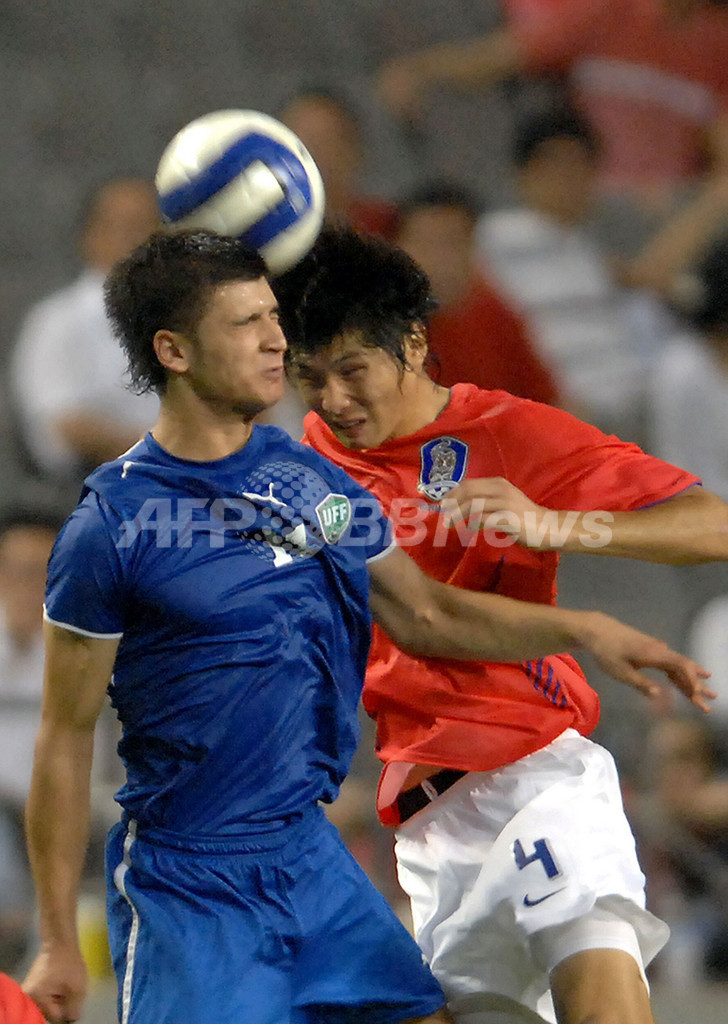 スポーツ サッカー 韓国 ウズベキスタンを破り五輪最終予選白星スタート 2007年8月23日 6:27 発信地:ソウル/韓国 [ 韓国・北朝鮮 韓国 ] このニュースをシェア ‹ › ❮ 2/5 ❯ ハイボールを競る韓国のカン・ミンス(%%Kang Min-Soo%%)とウズベキスタンのシャフボズ・エルキノフ(%%Shakhboz Erkinov%%)。(c)AFP/JUNG YEON-JE 画像作成中 ! 【8月22日 AFP】サッカー北京五輪アジア最終予選・グループB、韓国vsウズベキスタン。試合は韓国が2-1で勝利を収めた。(c)AFP サッカー 一覧へ> メディア・報道関係・法人の方向け 写真・動画 購入のお問合せ>