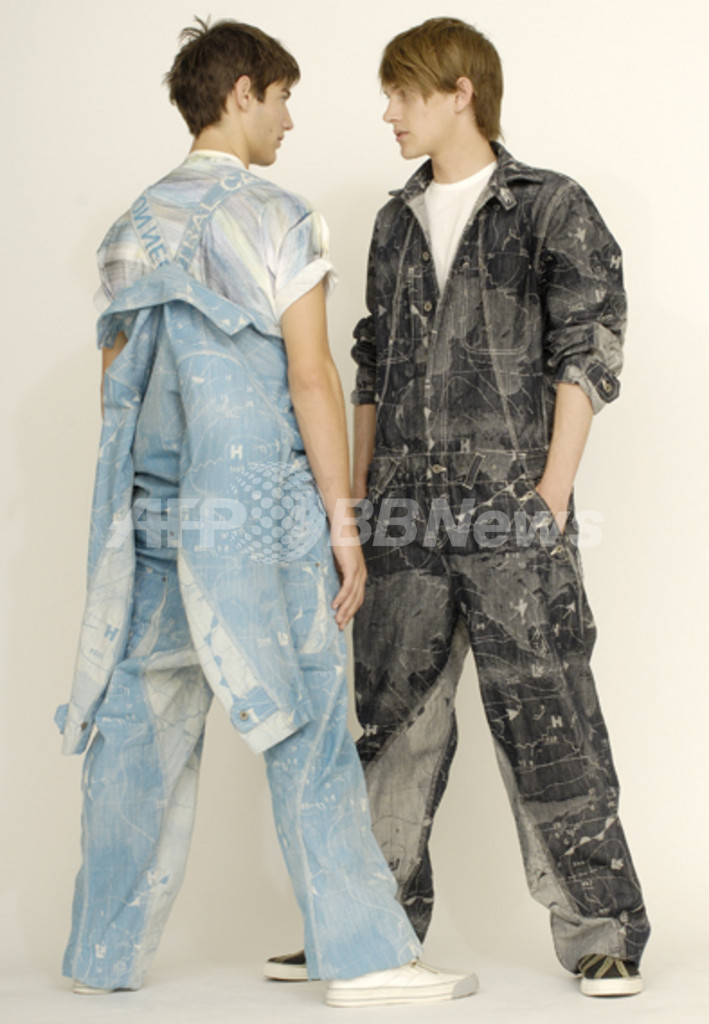 【東京 23日 上間常正】イッセイ ミヤケ(ISSEY MIYAKE)メンズの08年春夏コレクションのテーマは、「風」。優しくさわやかだが、時には強烈な風は、閉塞した空や大地、海を駆け抜ける。そんなイメージをさまざまに織り込んだ素材や柄が見る目をひきつける。特に、八丈島の海で採取したという黒潮の深いブルーと、伝統の絹織物「黄八丈」の輝く黄色の色彩が印象的だ。 ■「風」を織り込んだデザイン 風がもたらしたキーワードは、自然環境、カーボンニュートラル、海、砂漠、帆……と多彩だ。天気図を織り柄にしたブルゾン、海で暴れまわる海賊が着ていたようなシャツやパンツ。ヨットの帆のような素材のパーカは、二重の生地を曲線で切り開く手法で風をはらむイメージを表現している。 A-POCの手法を使った一体成型によるメッシュのニットなど、今回はA-POC INSIDEの服も多彩に展開されている。 ■八丈島の自然と伝統をデニムに デニムシリーズ「A-POC GALAXY」では、今回は《黄八丈ギャラクシー》と題されたシリーズの青と黄色が売り物だ。青は、実際に八丈島の海に潜り、黒潮の流れの海中に生地見本を持ち込んで海の色と見比べたという。 また黄色は、黄八丈の染めに使われているイネ科のコブナグサを使い、今もこの技を受け継ぐ八丈島の工房に依頼して染めたシルク糸を使った。その黄金のような色彩と黒潮のブルーの対比が独特の効果を生んだ。この2色の採取の様子を撮影したビデオも幻想的で美しい映像作品となった。 10月に開かれる08年春夏パリ・コレクションでは、同じ風をテーマにして、レディース作品とともにメンズ、FĖTEと、イッセイミヤケの3ブランド合同のショーが開かれる。(c)MODE PRESS 関連情報