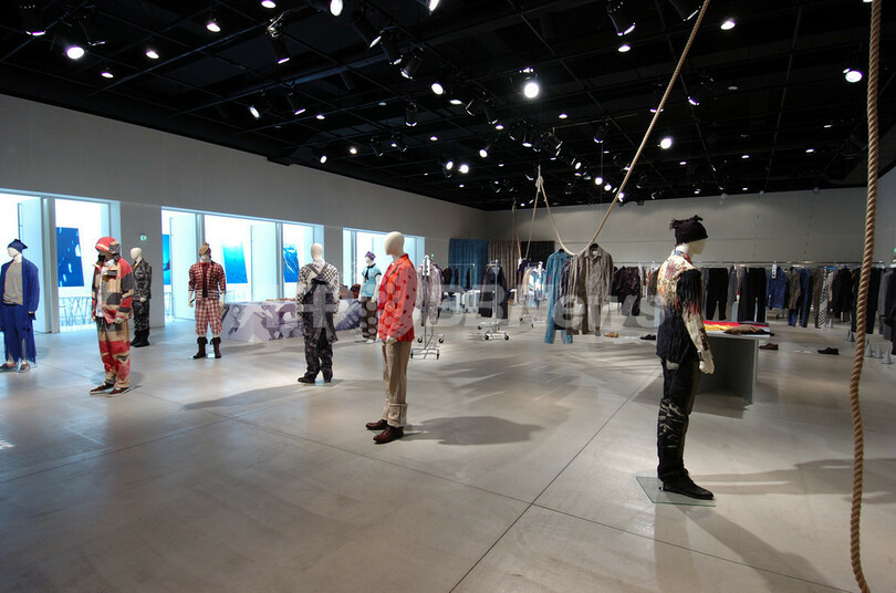 【東京 23日 上間常正】イッセイ ミヤケ(ISSEY MIYAKE)メンズの08年春夏コレクションのテーマは、「風」。優しくさわやかだが、時には強烈な風は、閉塞した空や大地、海を駆け抜ける。そんなイメージをさまざまに織り込んだ素材や柄が見る目をひきつける。特に、八丈島の海で採取したという黒潮の深いブルーと、伝統の絹織物「黄八丈」の輝く黄色の色彩が印象的だ。 ■「風」を織り込んだデザイン 風がもたらしたキーワードは、自然環境、カーボンニュートラル、海、砂漠、帆……と多彩だ。天気図を織り柄にしたブルゾン、海で暴れまわる海賊が着ていたようなシャツやパンツ。ヨットの帆のような素材のパーカは、二重の生地を曲線で切り開く手法で風をはらむイメージを表現している。 A-POCの手法を使った一体成型によるメッシュのニットなど、今回はA-POC INSIDEの服も多彩に展開されている。 ■八丈島の自然と伝統をデニムに デニムシリーズ「A-POC GALAXY」では、今回は《黄八丈ギャラクシー》と題されたシリーズの青と黄色が売り物だ。青は、実際に八丈島の海に潜り、黒潮の流れの海中に生地見本を持ち込んで海の色と見比べたという。 また黄色は、黄八丈の染めに使われているイネ科のコブナグサを使い、今もこの技を受け継ぐ八丈島の工房に依頼して染めたシルク糸を使った。その黄金のような色彩と黒潮のブルーの対比が独特の効果を生んだ。この2色の採取の様子を撮影したビデオも幻想的で美しい映像作品となった。 10月に開かれる08年春夏パリ・コレクションでは、同じ風をテーマにして、レディース作品とともにメンズ、FĖTEと、イッセイミヤケの3ブランド合同のショーが開かれる。(c)MODE PRESS 関連情報