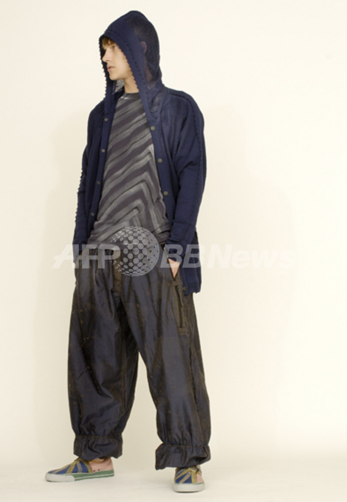 【東京 23日 上間常正】イッセイ ミヤケ(ISSEY MIYAKE)メンズの08年春夏コレクションのテーマは、「風」。優しくさわやかだが、時には強烈な風は、閉塞した空や大地、海を駆け抜ける。そんなイメージをさまざまに織り込んだ素材や柄が見る目をひきつける。特に、八丈島の海で採取したという黒潮の深いブルーと、伝統の絹織物「黄八丈」の輝く黄色の色彩が印象的だ。 ■「風」を織り込んだデザイン 風がもたらしたキーワードは、自然環境、カーボンニュートラル、海、砂漠、帆……と多彩だ。天気図を織り柄にしたブルゾン、海で暴れまわる海賊が着ていたようなシャツやパンツ。ヨットの帆のような素材のパーカは、二重の生地を曲線で切り開く手法で風をはらむイメージを表現している。 A-POCの手法を使った一体成型によるメッシュのニットなど、今回はA-POC INSIDEの服も多彩に展開されている。 ■八丈島の自然と伝統をデニムに デニムシリーズ「A-POC GALAXY」では、今回は《黄八丈ギャラクシー》と題されたシリーズの青と黄色が売り物だ。青は、実際に八丈島の海に潜り、黒潮の流れの海中に生地見本を持ち込んで海の色と見比べたという。 また黄色は、黄八丈の染めに使われているイネ科のコブナグサを使い、今もこの技を受け継ぐ八丈島の工房に依頼して染めたシルク糸を使った。その黄金のような色彩と黒潮のブルーの対比が独特の効果を生んだ。この2色の採取の様子を撮影したビデオも幻想的で美しい映像作品となった。 10月に開かれる08年春夏パリ・コレクションでは、同じ風をテーマにして、レディース作品とともにメンズ、FĖTEと、イッセイミヤケの3ブランド合同のショーが開かれる。(c)MODE PRESS 関連情報