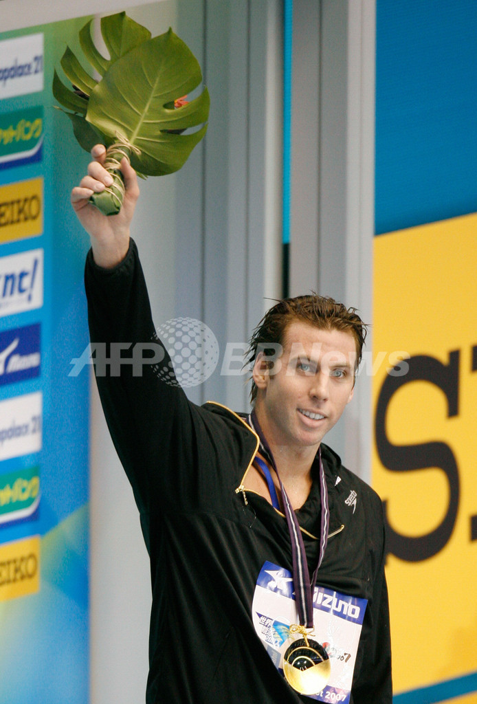 【8月23日 AFP】世界競泳2007(International Swim Meet 2007 in JAPAN)、男子1500メートル自由形・決勝。オーストラリアのグラント・ハケット(Grant Hackett)は、14分48秒70を記録して優勝を飾り、金メダルを獲得した。また、2位には14分50秒72でポーランドのマテウシュ・サヴリモヴィッチ(Mateuuz Sawrymowicz)が、3位には14分58秒43で韓国のパク・テファン(Park Tae-Hwan)が入った。(c)AFP