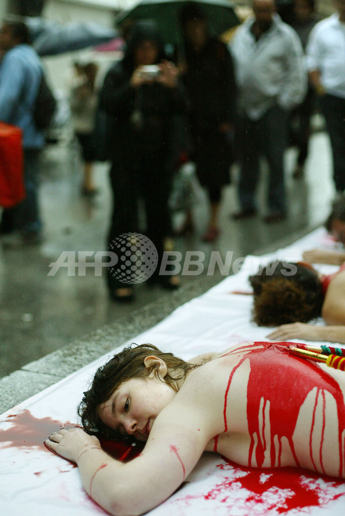 ニュース ライフ こぼれ話 動物保護団体「Equanimal」 反闘牛パフォーマンスを行う 2007年8月24日 10:01 発信地:ビルバオ/スペイン [ ヨーロッパ スペイン ] このニュースをシェア ‹ › ❮ 8/8 ❯ 2007年8月23日、スペイン北部ビルバオ(Bilbao)で行われた動物保護団体「Equanimal」による反闘牛パフォーマンス。(c)AFP/RAFA RIVAS 画像作成中 ! 【8月24日 AFP】スペイン北部ビルバオ(Bilbao)で23日、動物保護団体「Equanimal」による反闘牛パフォーマンスが行われた。スペインのテレビ局TVEは22日、児童視聴者の保護のため、半世紀に渡り続いた伝統の闘牛の生放送を中止することを決定した。(c)AFP ライフ 一覧へ> メディア・報道関係・法人の方向け 写真・動画 購入のお問合せ>