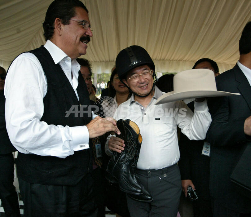 【8月24日 AFP】ホンジュラスを訪れた台湾の陳水扁(Chen Shui-bian)総統は23日、首都テグシガルパ(Tegucigalpa)の北方にあるカントリークラブBosques de Zambranoで、ホンジュラスのホセ・マヌエル・セラヤ(Jose Manuel Zelaya)大統領と乗馬を楽しんだ。22日に陳総統も出席して行われた中米諸国のサミットでは、エネルギー問題と環境問題などが話し合われた。中米の首脳らは、中国との貿易関係を強化していくが、台湾の国連加盟も支援していくとの考えを陳総統に伝えた。(c)AFP
