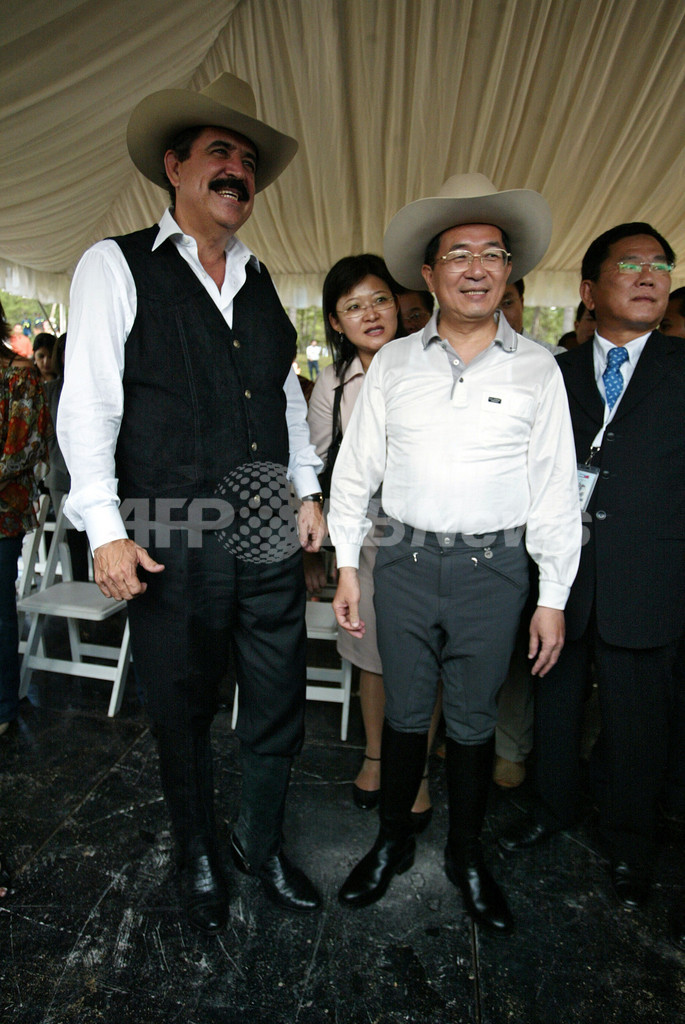 【8月24日 AFP】ホンジュラスを訪れた台湾の陳水扁(Chen Shui-bian)総統は23日、首都テグシガルパ(Tegucigalpa)の北方にあるカントリークラブBosques de Zambranoで、ホンジュラスのホセ・マヌエル・セラヤ(Jose Manuel Zelaya)大統領と乗馬を楽しんだ。22日に陳総統も出席して行われた中米諸国のサミットでは、エネルギー問題と環境問題などが話し合われた。中米の首脳らは、中国との貿易関係を強化していくが、台湾の国連加盟も支援していくとの考えを陳総統に伝えた。(c)AFP