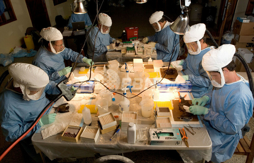 WHOのほか、米アトランタ(Atlanta)の疾病予防管理センター(Centers for Disease Control and Prevention、CDC)、南アフリカの国立感染症研究所(National Institute of Communicable Diseases、NICD)の専門家チームは、防護服に身を包み、森林保護区のKitakaにある鉱山に入りコウモリを捜索、捕獲して検体を採取した。採取された血液と臓器の検体は液体窒素で保存してカンパラまで運ばれ、そこからCDCとNICDに送られることになっている。(c)AFP