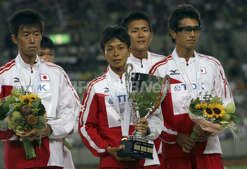 スポーツ スポーツ その他 日本 男子マラソンで団体優勝を飾る 2007年8月25日 19:57 発信地:大阪 [ アジア・オセアニア 大阪 ] このニュースをシェア ‹ › ❮ 4/4 ❯ 団体優勝を飾り、表彰式に臨む日本の選手たち。(c)AFP/GABRIEL BOUYS 画像作成中 ! 【8月25日 AFP】第11回世界陸上大阪大会(11th IAAF World Championships in Athletics Osaka)、男子マラソン。日本は、尾方剛(Tsuyoshi Ogata)が5位、大崎悟史(Satoshi Osaki)が6位、諏訪利成(Toshinari Suwa)が7位、佐藤智之(Tomoyuki Sato)が13位でそれぞれゴールし、団体優勝を果たした。(c)AFP スポーツ その他 一覧へ> メディア・報道関係・法人の方向け 写真・動画 購入のお問合せ>