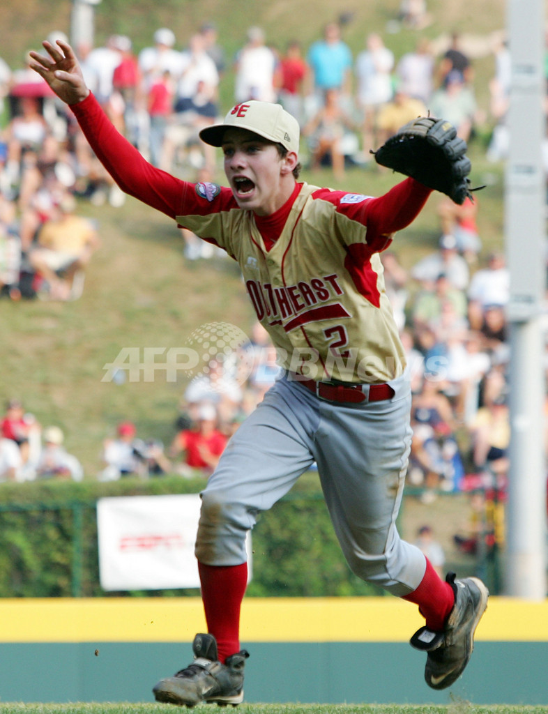 【8月26日 AFP】2007年リトルリーグ・ワールドシリーズ(2007 Little League World Series)・米国の部・決勝、ラボック・ウエスタンLL(Lubbock Western LL、テキサス州)vsワーナーロビンズ・アメリカンLL(Warner Robins American LL、ジョージア州)。試合はワーナーロビンズが5-2でラボックを降し、現地時間26日にリトルリーグ世界一をかけて国際の部で優勝した日本の東京北砂LL(Tokyo Kitasuna LL)と対戦する。(c)AFP/Getty Images