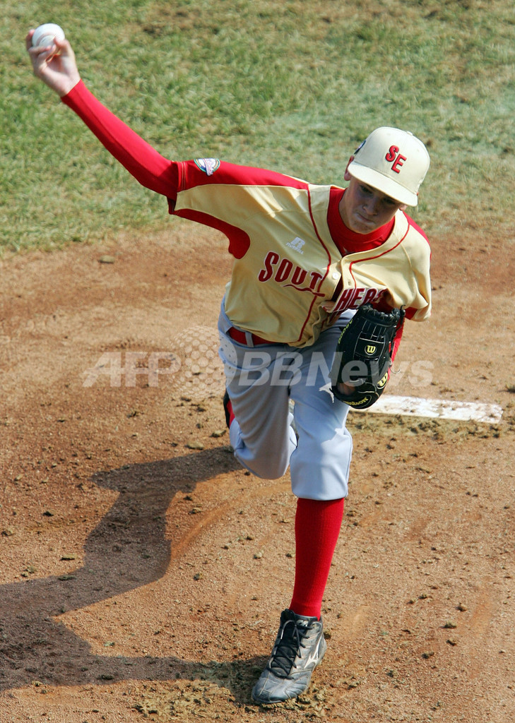 【8月26日 AFP】2007年リトルリーグ・ワールドシリーズ(2007 Little League World Series)・米国の部・決勝、ラボック・ウエスタンLL(Lubbock Western LL、テキサス州)vsワーナーロビンズ・アメリカンLL(Warner Robins American LL、ジョージア州)。試合はワーナーロビンズが5-2でラボックを降し、現地時間26日にリトルリーグ世界一をかけて国際の部で優勝した日本の東京北砂LL(Tokyo Kitasuna LL)と対戦する。(c)AFP/Getty Images