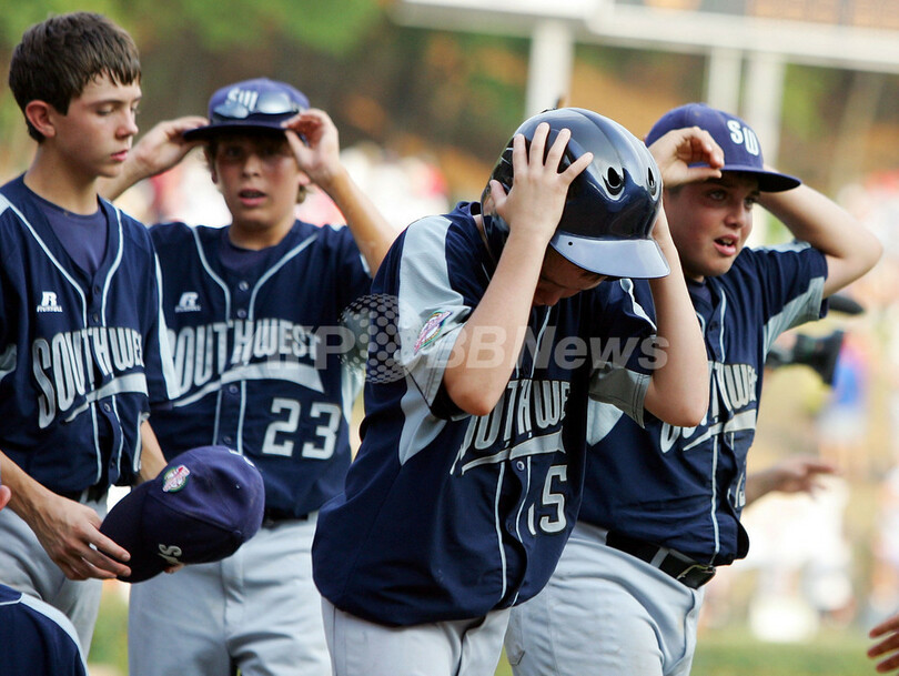 【8月26日 AFP】2007年リトルリーグ・ワールドシリーズ(2007 Little League World Series)・米国の部・決勝、ラボック・ウエスタンLL(Lubbock Western LL、テキサス州)vsワーナーロビンズ・アメリカンLL(Warner Robins American LL、ジョージア州)。試合はワーナーロビンズが5-2でラボックを降し、現地時間26日にリトルリーグ世界一をかけて国際の部で優勝した日本の東京北砂LL(Tokyo Kitasuna LL)と対戦する。(c)AFP/Getty Images