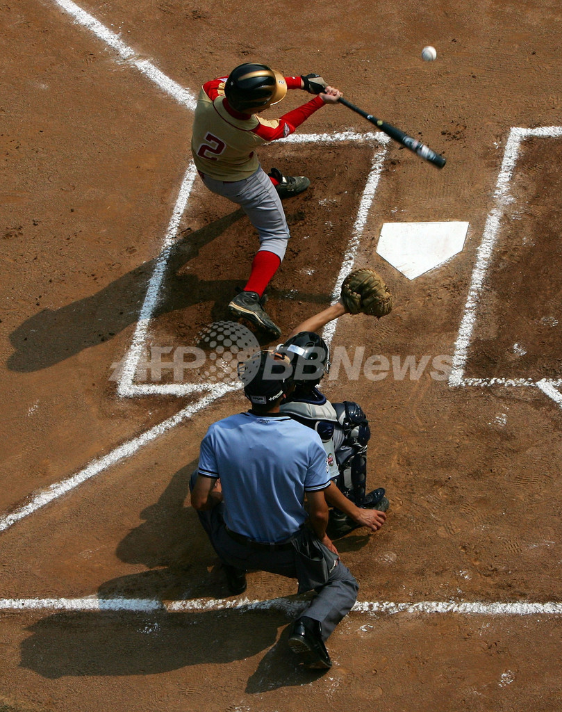 【8月26日 AFP】2007年リトルリーグ・ワールドシリーズ(2007 Little League World Series)・米国の部・決勝、ラボック・ウエスタンLL(Lubbock Western LL、テキサス州)vsワーナーロビンズ・アメリカンLL(Warner Robins American LL、ジョージア州)。試合はワーナーロビンズが5-2でラボックを降し、現地時間26日にリトルリーグ世界一をかけて国際の部で優勝した日本の東京北砂LL(Tokyo Kitasuna LL)と対戦する。(c)AFP/Getty Images