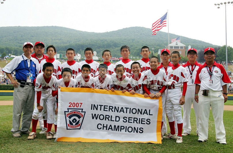 【8月26日 AFP】2007年リトルリーグ・ワールドシリーズ(2007 Little League World Series)・国際の部・決勝、Pabao LL(カリブ海代表)vs東京北砂LL(Tokyo Kitasuna LL、日本)。試合はサヨナラで東京北砂LLが7-4でPabao LLに勝利し、現地時間26日にリトルリーグ世界一をかけて米国の部で優勝したラボック・ウエスタンLL(Lubbock Western LL、テキサス州)と対戦する。(c)AFP/Getty Images