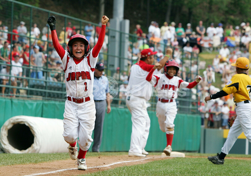 【8月26日 AFP】2007年リトルリーグ・ワールドシリーズ(2007 Little League World Series)・国際の部・決勝、Pabao LL(カリブ海代表)vs東京北砂LL(Tokyo Kitasuna LL、日本)。試合はサヨナラで東京北砂LLが7-4でPabao LLに勝利し、現地時間26日にリトルリーグ世界一をかけて米国の部で優勝したラボック・ウエスタンLL(Lubbock Western LL、テキサス州)と対戦する。(c)AFP/Getty Images