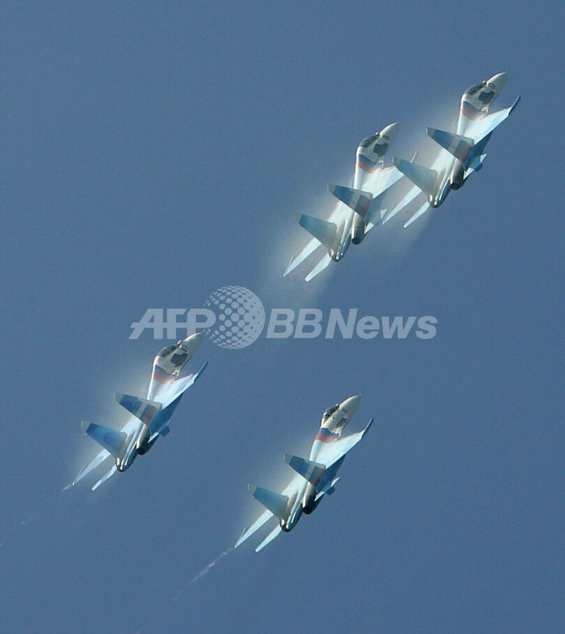 ニュース 政治・経済 ロシア国際航空見本市で曲芸飛行 2007年8月26日 17:06 発信地:ジュコフスキー/ロシア [ ロシア・CIS ロシア ] このニュースをシェア ‹ › ❮ 32/36 ❯ 2007年8月25日、ジュコフスキー(Zhukovsky)飛行場上空で曲芸飛行を行うパイロットチーム「ロシアンナイツ(Russian knights)のスホーイSu-27。(c)AFP/MAXIM MARMUR 画像作成中 ! 【8月26日 AFP】モスクワ郊外のジュコフスキー(Zhukovsky)飛行場で開催されている国際航空見本市「MAKS2007」4日目の25日、ロシアやフランスのパイロットチームが会場上空で見事な曲芸飛行を披露した。(c)AFP 政治・経済 一覧へ> メディア・報道関係・法人の方向け 写真・動画 購入のお問合せ>
