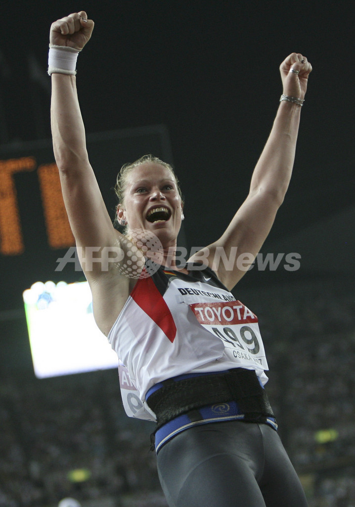 スポーツ スポーツ その他 クライナート 女子砲丸投げ3位入賞 2007年8月26日 22:01 発信地:大阪 [ アジア・オセアニア 大阪 ] このニュースをシェア ‹ › ❮ 1/3 ❯ 3位入賞を果たし喜ぶ、クライナート。(c)AFP/GABRIEL BOUYS 画像作成中 ! 【8月26日 AFP】第11回世界陸上大阪大会(11th IAAF World Championships in Athletics Osaka)、女子砲丸投げ・決勝。ドイツのナディネ・クライナート(Nadine Kleinert)は、5投目に19メートル77センチメートルを記録して、3位入賞を果たした。(c)AFP スポーツ その他 一覧へ> メディア・報道関係・法人の方向け 写真・動画 購入のお問合せ>