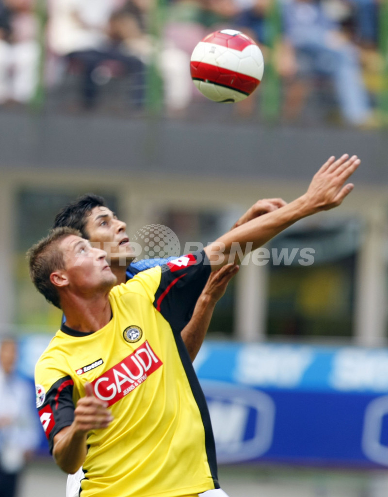 スポーツ サッカー インテル 新シーズン開幕戦は1-1のドロー 2007年8月27日 2:02 発信地:ミラノ/イタリア [ ヨーロッパ イタリア ] このニュースをシェア ‹ › ❮ 2/13 ❯ ウディネーゼのアンドレア・コーダ(%%Andrea Coda%%、手前)と競り合うインテルのフリオ・リカルド・クルス(%%Julio Ricardo Cruz%%)。(c)AFP/DAMIEN MEYER 画像作成中 ! 【8月27日 AFP】サッカー、07-08イタリア・セリエA・第1節、インテル(Inter Milan)vsウディネーゼ(Udinese)。試合は1-1の引き分けに終わった。(c)AFP サッカー 一覧へ> メディア・報道関係・法人の方向け 写真・動画 購入のお問合せ>