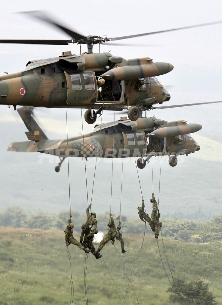ニュース 政治・経済 自衛隊火力演習、戦車やロケット弾の射撃披露 2007年8月27日 9:52 発信地:静岡 [ アジア・オセアニア 静岡 ] このニュースをシェア ‹ › ❮ 5/9 ❯ 2007年8月26日、陸上自衛隊の「富士総合火力演習」でヘリコプターから降下する隊員。(c)AFP/Toru YAMANAKA 画像作成中 ! 【8月27日 AFP】毎年恒例の陸上自衛隊の「富士総合火力演習」が26日、富士すそ野の御殿場で開かれた。自衛隊員2000人が参加し、戦車・装甲車60両、航空機20機を使った演習を披露した。(c)AFP 政治・経済 一覧へ> メディア・報道関係・法人の方向け 写真・動画 購入のお問合せ>