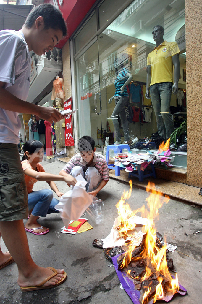 ニュース ライフ ベトナムのお盆「ブラン祭」、紙を燃して先祖に送る 2007年8月27日 15:30 発信地:ハノイ/ベトナム [ アジア・オセアニア ベトナム ] このニュースをシェア ‹ › ❮ 3/3 ❯ 2007年8月24日、「ブラン祭(Vu Lan)」を前に、祈りを捧げ、紙を燃やす人々。(c)AFP/Hoang Dinh Nam 画像作成中 ! 【8月27日 AFP】ベトナムのお盆にあたる「ブラン祭(Vu Lan)」が、26日に行われた。「ブラン祭」では、家、家具、車、バイク、自転車、テレビ、エアコン、その他の生活用品を紙で作り、これを燃やす。ベトナムでは、ご先祖様があの世の生活でも、現世と同じものが必要だろうと信じられているためだ。(c)AFP ライフ 一覧へ> メディア・報道関係・法人の方向け 写真・動画 購入のお問合せ>