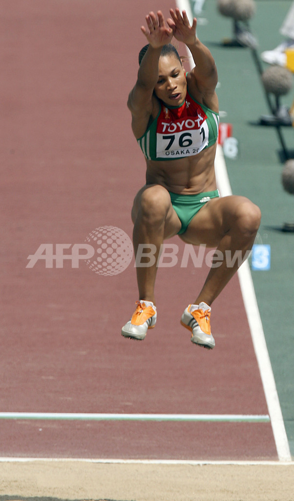 【8月27日 AFP】第11回世界陸上大阪大会(11th IAAF World Championships in Athletics Osaka)、女子走り幅跳び・予選。ポルトガルのナイデ・ゴメス(Naide Gomes)は、6メートル96センチメートルを記録して予選グループAの1位に入り決勝進出を決めた。決勝には標準記録の6メートル75センチメートルを跳んだ7人(Q)と、その次に記録の高い5人(q)の合わせて12人が進出を決めた。