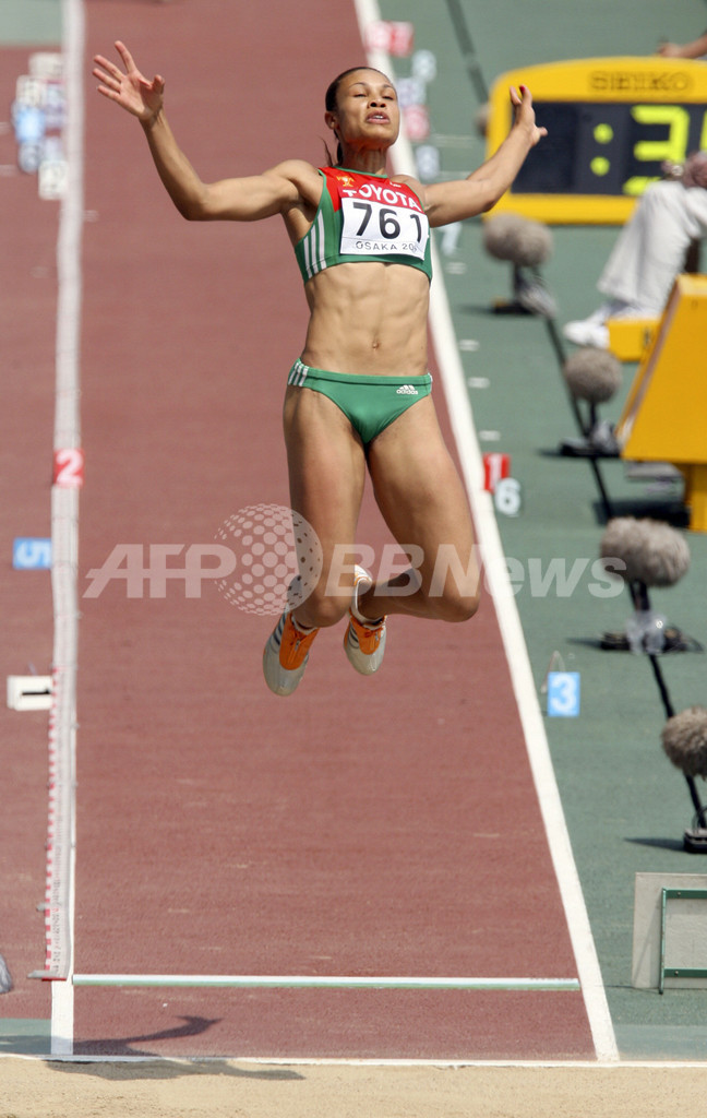【8月27日 AFP】第11回世界陸上大阪大会(11th IAAF World Championships in Athletics Osaka)、女子走り幅跳び・予選。ポルトガルのナイデ・ゴメス(Naide Gomes)は、6メートル96センチメートルを記録して予選グループAの1位に入り決勝進出を決めた。決勝には標準記録の6メートル75センチメートルを跳んだ7人(Q)と、その次に記録の高い5人(q)の合わせて12人が進出を決めた。
