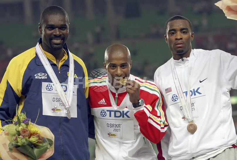 【8月28日 AFP】第11回世界陸上大阪大会(11th IAAF World Championships in Athletics Osaka)、男子三段跳び・決勝。ポルトガルのネルソン・エボラ(Nelson Evora)は、17メートル74を記録し金メダルを獲得した。また、銀メダルはジャデル・グレゴリオ(Jadel Gregorio、ブラジル)が、銅メダルはウォルター・デービス(Walter Davis、米国)がそれぞれ獲得した。
