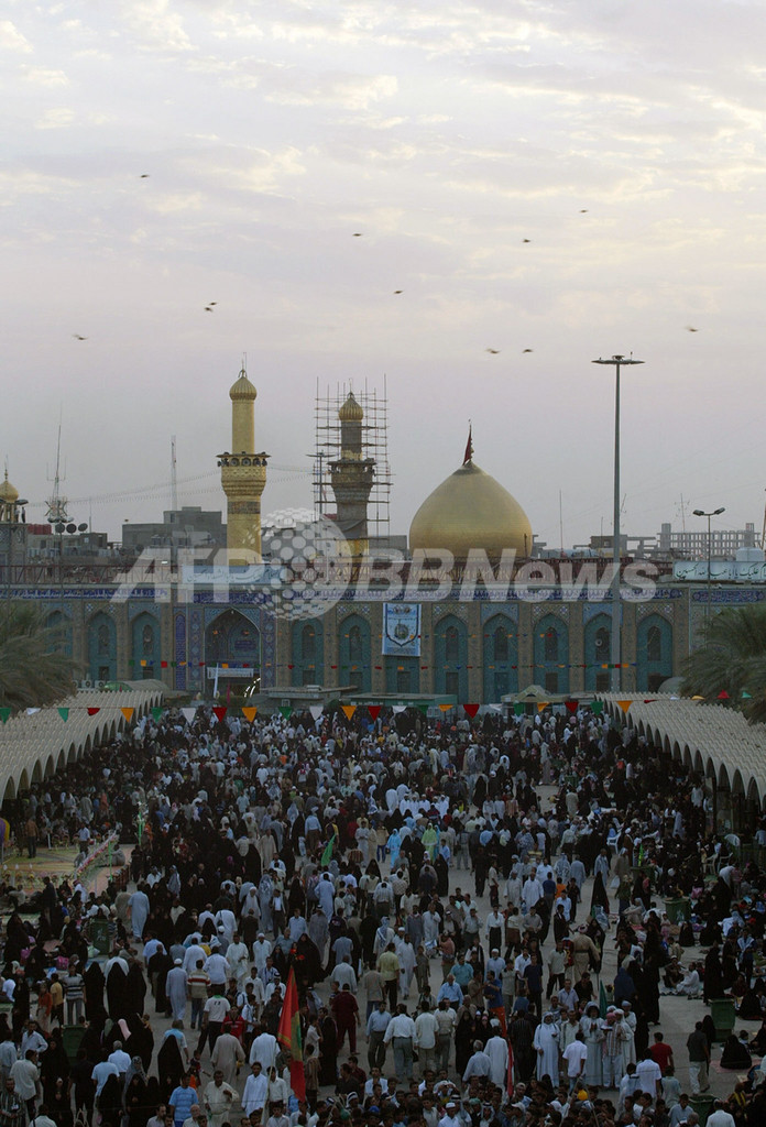 ニュース ライフ カルバラで第12代イマーム生誕800年記念式典控え、警戒態勢 2007年8月28日 11:51 発信地:カルバラ/イラク [ 中東・北アフリカ イラク ] このニュースをシェア ‹ › ❮ 2/2 ❯ 2007年8月26日、イスラム教シーア(Shiite)派第12代イマームのマフディ(Mahdi)生誕800年の祝賀を前に、イマーム・フセイン(Imam Hussein)廟を訪れる多数のシーア派信徒。(c)AFP/MOHAMMED SAWAF 画像作成中 ! 【8月28日 AFP】イラクのイスラム教シーア(Shiite)派第12代イマームのマフディ(Mahdi)生誕800年を祝う宗教行事を控え、警察当局は警戒態勢を強めている。26日から首都バグダッド(Baghdad)から110キロ離れた同派の聖地カルバラ(Karbala)で4重の警戒線を敷き、車両の全面通行禁止令が出された。同宗教行事の期間にはシーア派巡礼者数万人のが同地を訪れると予想される。(c)AFP ライフ 一覧へ> メディア・報道関係・法人の方向け 写真・動画 購入のお問合せ>