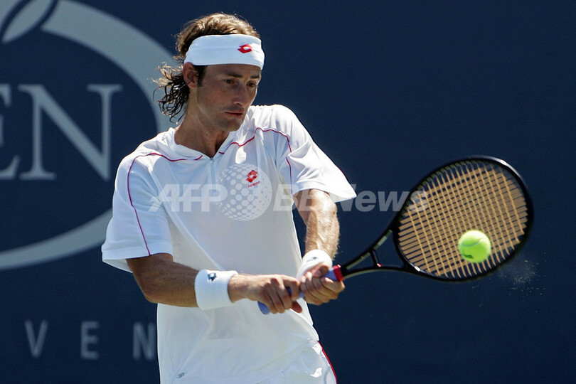 【8月28日 AFP】全米オープン・テニス2007(the US Open Tennis Championships 2007)、男子シングルス1回戦。スペインのフェリシアーノ・ロペス(Feliciano Lopez)は、大会第21シードのファン・カルロス・フェレーロ(Juan Carlos Ferrero、スペイン)と対戦。ロペスはセットカウント3-0(6-3、6-4、6-4)のストレートでフェレーロに勝利し、2回戦進出を決めた。(c)AFP/Getty Images