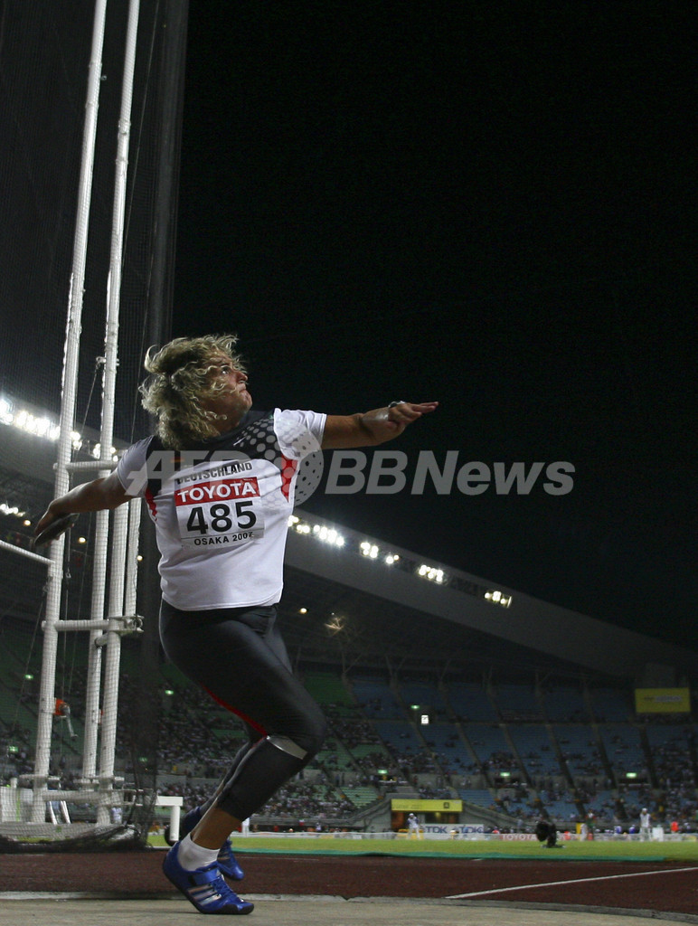 【8月29日 AFP】第11回世界陸上大阪大会(11th IAAF World Championships in Athletics Osaka)、女子円盤投げ・決勝。ドイツのフランカ・ディーチェ(Franka Dietzsch)は、66メートル61を記録し優勝を果たした。
